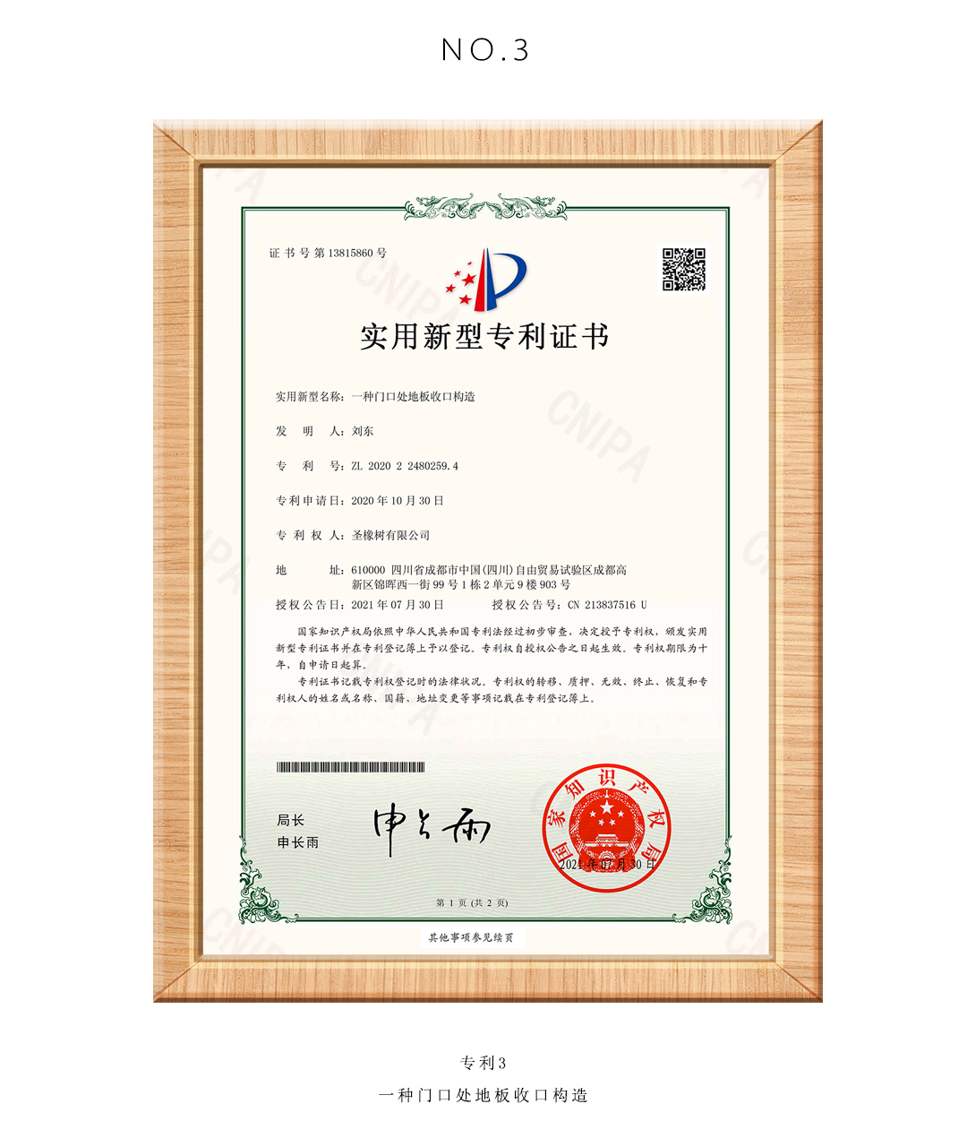 申請的4項專利順利通過,專利證書也拿到啦。
